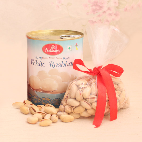 Make this forthcoming Ganesha Chaturthi a grand affair for your dear ones by surprising them with this sweet and nutty gift combo. The healthy white Rasbhari from the house of Haldiram and the crunchy pistachios are perfect expressions of your love and admiration to them.