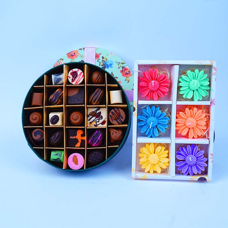 Combo of Round Shape Velvet Chocolate and Floating Candles