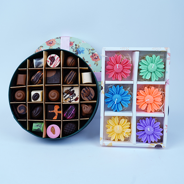 Home /Diwali Best Sellers / Combo of Round Shape Velvet Chocolate and Floating Candles