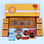 Golden Celebration Box with Kaju Katli Almonds and Pooja Essentials