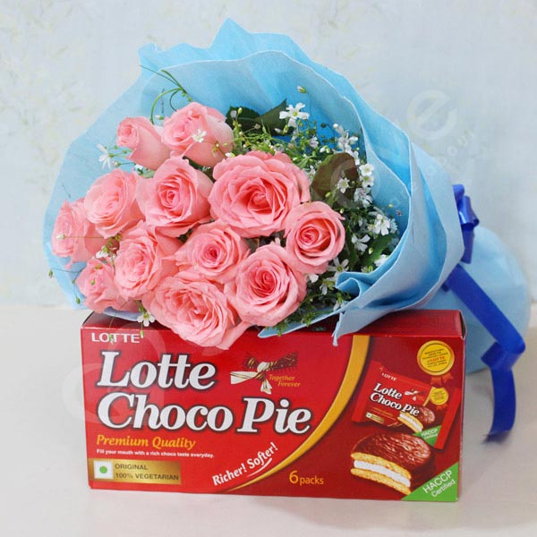 Lovely are the roses of this beautiful flower bunch and delicious is the chocolate snack clubbed with it. So what are you still wondering when here you are getting this amazing gift combo of lovely flowers with chocolate to shop online. Hurry to place your order to impress a special one this time.
