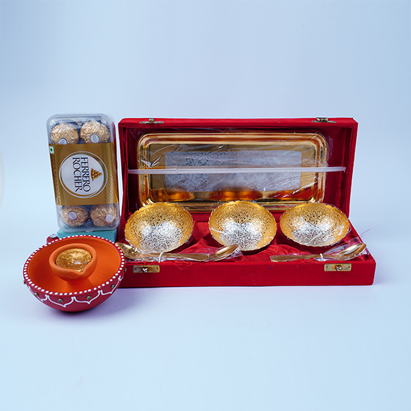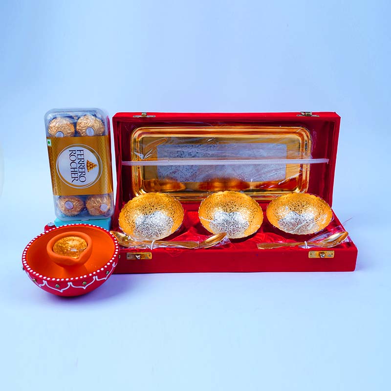 Premium German Silver Gift Set with Designer Diya and Ferrero Rocher