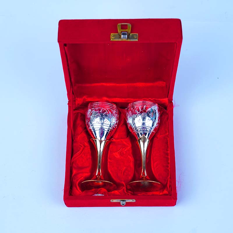 Premium Silver Plated Wine Glass Set with Kaju Katli Pringles and Decorative Diyas